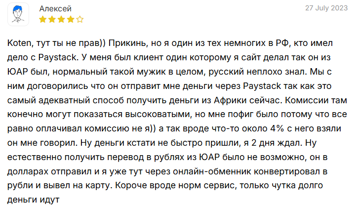 Мы кратко изложили суть работы сервиса Paystack. В целом это зрелая платформа для приёма платежей в Африке с сильной локализацией, удобной интеграцией и прозрачной операционной частью. Но отклики пользователей часто сфокусированы на недостатках. Поэтому отрицательных сторон ими подсвечено немало.