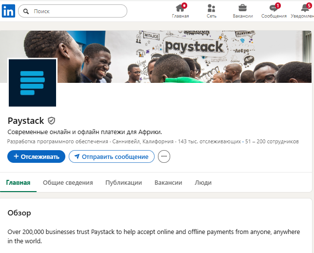 Профили в соцсетях созданы для того, чтобы потенциальные бизнес-клиенты и разработчики могли быстро и наглядно оценить, как их покупатели будут взаимодействовать с платежной системой Paystack. Эти каналы используются в основном для новостей, статусов, релизов SDK, вакансий и поддержки.