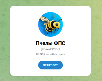 Для работы с ботом необходим мессенджер, то есть Пчелы ФПС без ТГ запустить не получится. Сначала нужно перейти на страницу бота, затем нажать на кнопку /Start.