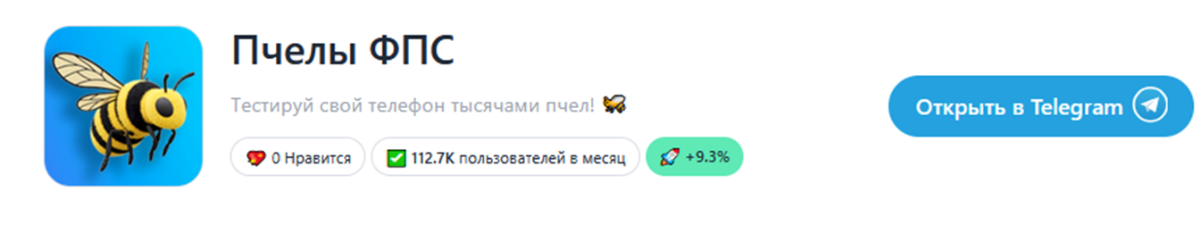 Приложение Beesfpsbot присутствует в каталогах мини-приложений для смартфонов. Но отзывов на него нет, складывается впечатление, что особой популярностью оно не пользуется. Об этом говорит и заявленное число пользователей. Не так давно оно составляло около 112,7 тысяч в месяц, сейчас упало до 98,9 тысяч.
