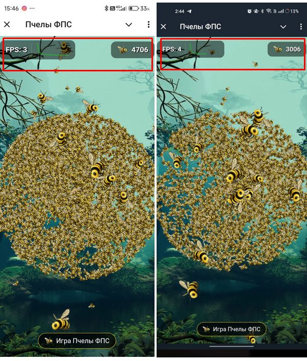 Игра «Пчелы ФПС» признаков обмана не показывает. Это мини-приложение для Телеграмм, при помощи которого можно проверить уровень производительности своего смартфона.