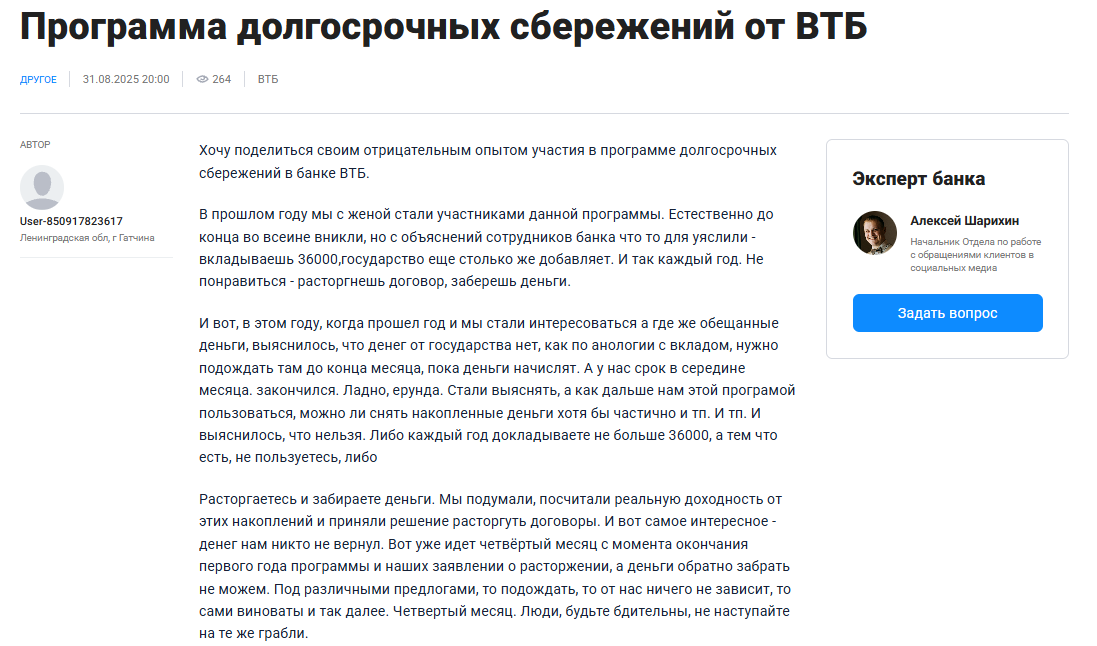 Отзывы о программе долгосрочных сбережений от «ВТБ»