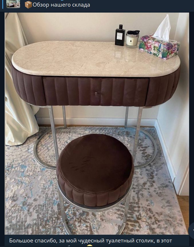 Мы не рекомендуем делать покупки в тг-магазине «Первый мебельный», так как у него нет подтвержденной положительной репутации. Есть вероятность, что после отправки предоплаты вы ничего не получите.