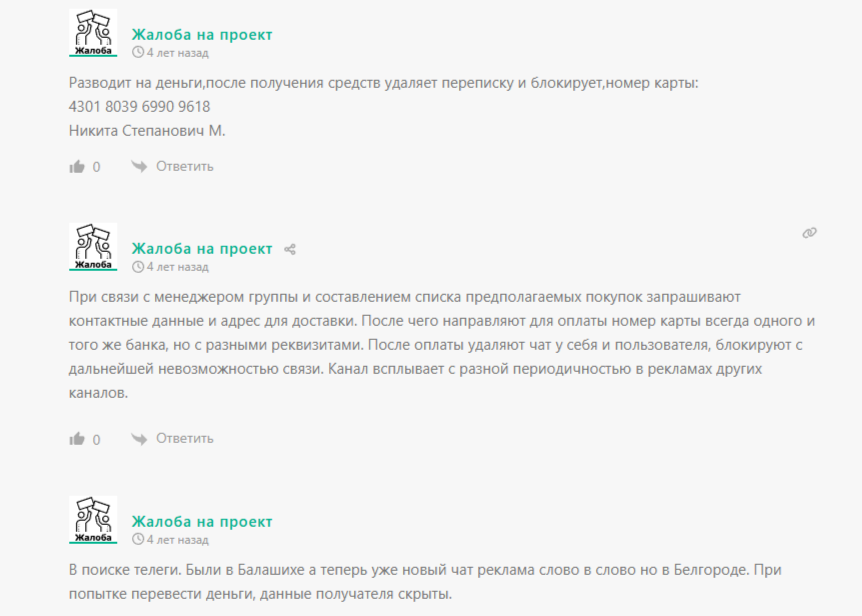 За время преступной деятельности магазин в мессенджере не получил благодарных комментариев в свой адрес. Не нашлось в сети пользователей, которые бы написали отзывы о высоком качестве продукции, низких ценах продавца или оперативной доставке заказа.