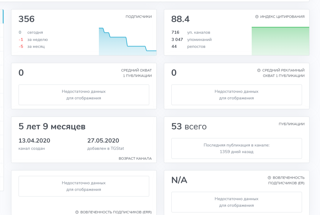 Телеграм канал «Первый табачный» появился в мессенджере 27 мая 2020 года. На момент своей ликвидации проект имел всего 356 подписчиков. Публикации с обзорами товаров просматривали 2% целевой аудитории. За пару лет работы ресурс в мессенджере получил метку «Скам» и прекратил свое существование.