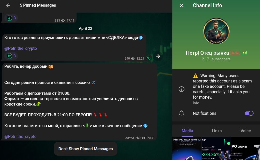 «Петр Отец Рынка» — телеграм-канал, который лучше обходить стороной, потому что заработать на нем невозможно. Автор сообщества обещает повышенную доходность, а на самом деле: