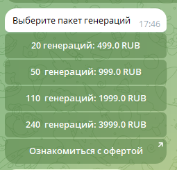 Купил 20 генераций за 499 р чтоб фотки обработать. Качество отстой, а деньги списывают автоматом! Хотел возврат сделать, саппорта нет, в канале только смайлики ставить можно. За каждый чих просят еще купить пакет за 999 р! Чисто доилка без гарантий. Нефига не работает нормально!