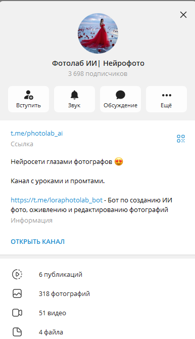 Канал Фотолаб ИИ| Нейрофото насчитывает около 3.7 тыс. подписчиков и публикует материалы с регулярным охватом от 3 тыс. до 3.5 тыс. просмотров на пост, что обеспечивает стабильный поток аудитории к боту @loraphotolab_bot.