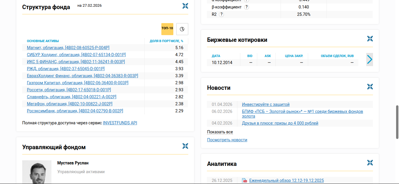 В структуру фонда входят облигации 10 компаний, включая следующие: