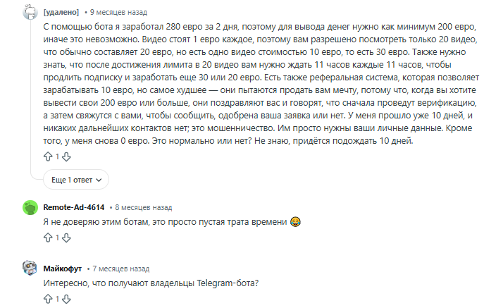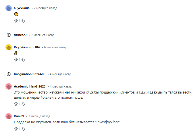 Критика бота и жалобы на задержки выплат преобладают на сторонних площадках. В основном люди отмечают неясные условия некоторых акций, отсутствие оперативной поддержки в спорных ситуациях. Есть и сложности с выводом больших сумм.