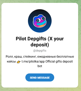 Pilotgift – это игровая имитация активной финансовой деятельности. Площадка привлекает аудиторию через Telegram-канал и обещает раздачу подарков, бонусов или виртуальных активов. Однако, непонятно есть ли у этого бота Pilot gift, ранее Depgifts, быстрые презенты или только пустые обещания.