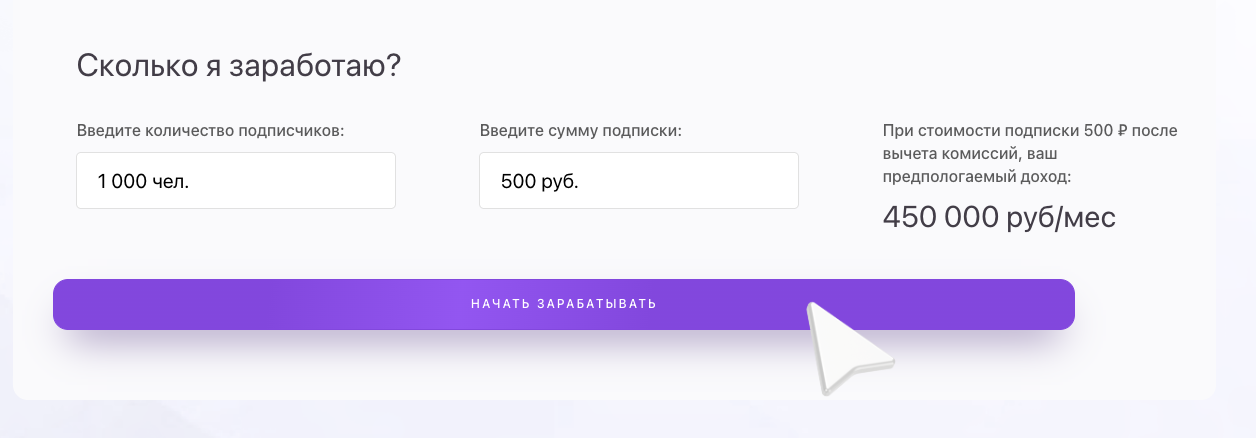 Пользователям данного сервиса предлагают публиковать фотографии, видео и другие материалы, формировать аудиторию и побуждать ее оформлять платные подписки. На главной странице платформы присутствует калькулятор, который позволяет приблизительно рассчитать, какой доход способна принести медийная деятельность на сайте.