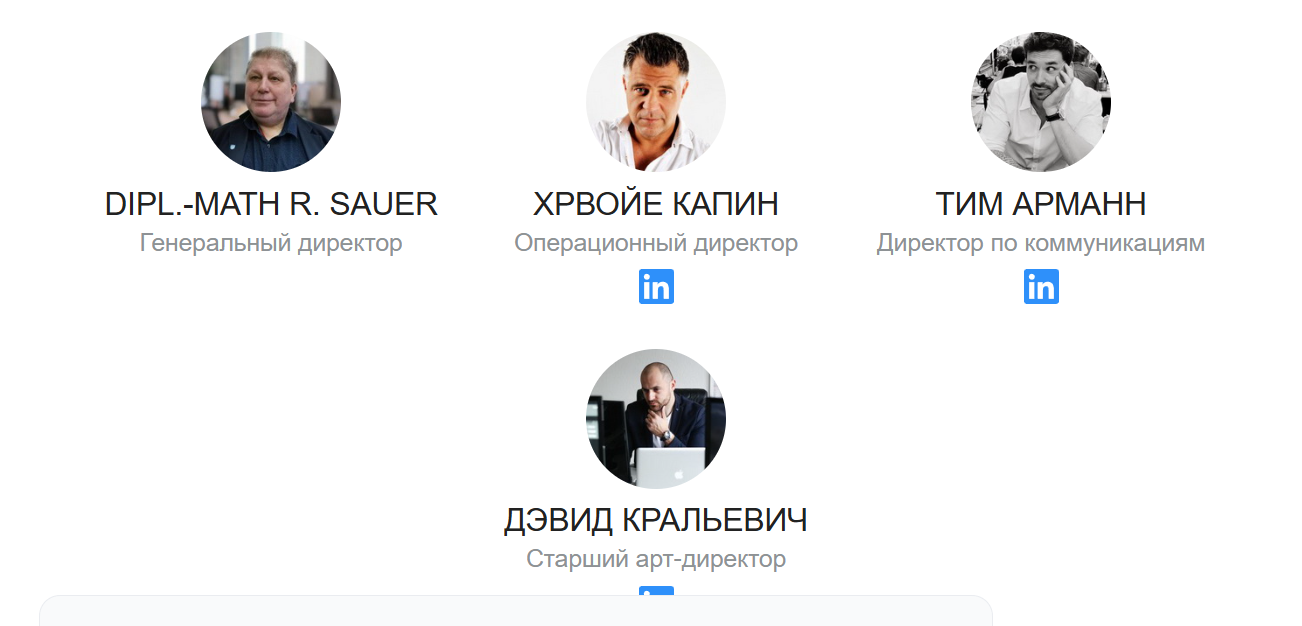 В роли создателей выступает некто Р. Саер, Х. Капин, Т. Арманн и Д. Кральевич. Все они имеют большой опыт в сфере криптовалют и являются соучредителями крупных структур.