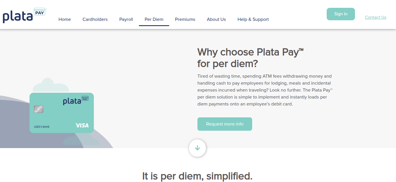 - Per Diem. Компании могут использовать PlataPay для выдачи наличных средств своим сотрудникам.