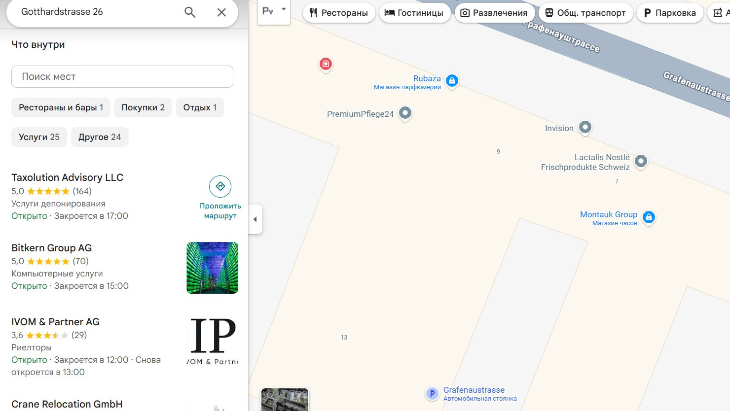 По адресу расположено множество магазинов, ресторанов и баров, но офиса подобной компании там нет.