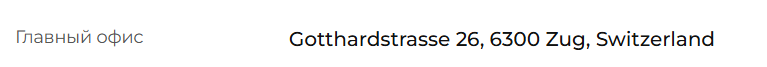 Авторы пишут, что проект зарегистрирован в Швейцарии. Офис находится по адресу Готтхардштрассе 26 в городе Цуг.