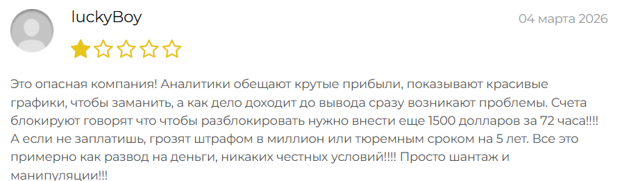 - Отзывы содержат обвинения авторов в разводе и скаме, пишут о том, что получить свои деньги нельзя, а создатели вымогают новые внесения и доплаты для разблокировки баланса, следовательно, подтверждается негативное впечатление о платформе.