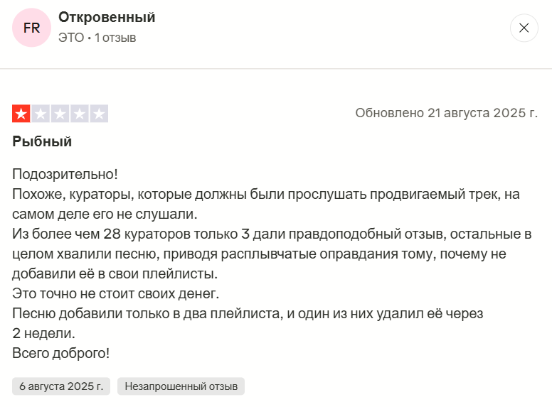 - Нет гарантий попадания в плейлисты даже после оплаты, так что деньги могут не окупиться.