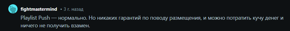 Также в отзывах на заработок через проект PlaylistPush com пользователи отмечают отсутствие каких-либо гарантий, что после внесения средств на раскрутку своего трека, он действительно принесет желаемый результат и доход в будущем.