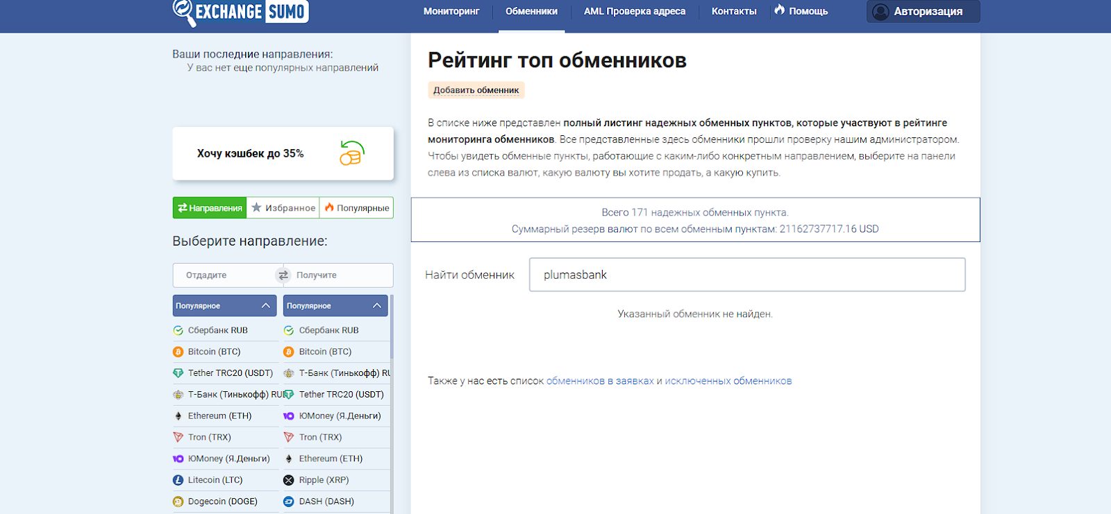 Обзор Plumasbank Exchange: отзывы клиентов, как работает обменник