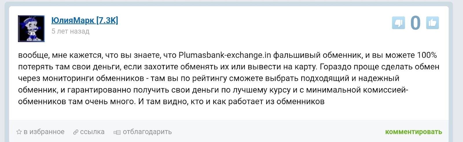 Дополнительно в комментариях упоминается домен .in, который не типичен для проектов, позиционирующих себя как международные обменники. Plumasbank Exchange In отсутствует в авторитетных мониторингах проверенных обменных пунктов. Некоторые участники обсуждений прямо советуют выбирать сервисы только из проверенных мониторингов.