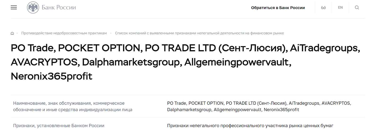 Владельцы утверждают, что умеют торговать с прибылью на бинарных опционах, а в качестве основной площадки выделяют брокера Pocket Option, которого ЦБ РФ внес в черный список.