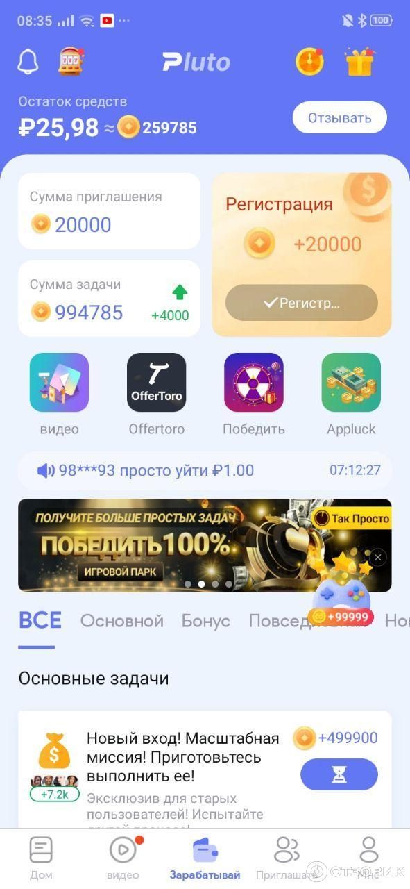 Заработок на приложении Pluto
