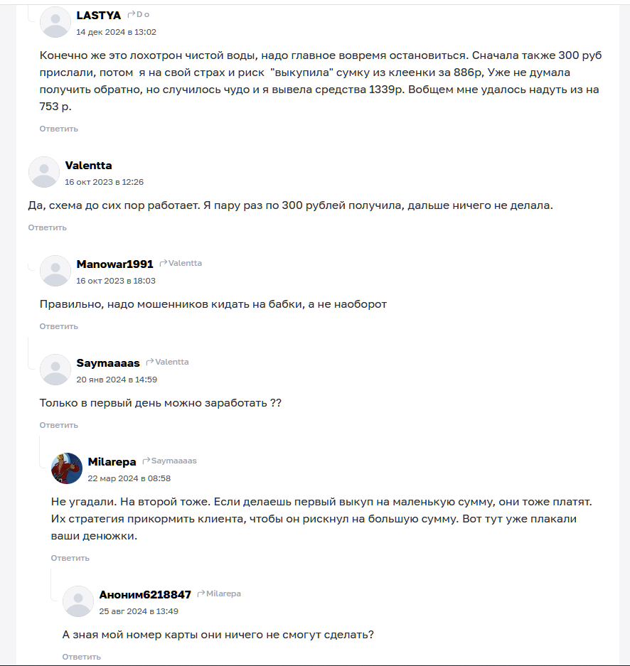 Афера с выкупом товаров активно продвигается мошенниками в социальных сетях. Есть очень много отзывов пользователей, которые потеряли деньги, поверив в быстрое обогащение.
