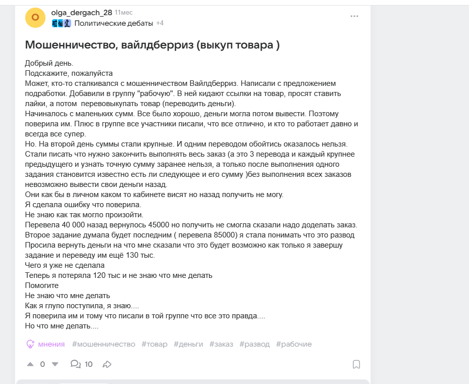 - Человек должен выбрать и выкупить товар на маркетплейсе WB, но деньги якобы переводятся сразу на счет продавца, а не на торговую платформу.