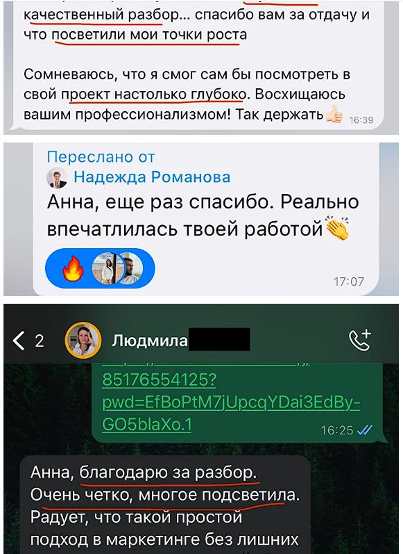 Другая пользовательница в видео-отзыве делится, что после сотрудничества с Полиной Пылевой заработала 1,5 млн за 3 недели. Также есть комментарии от благодарных клиентов, которые хвалят ее глубокий и качественный разбор: