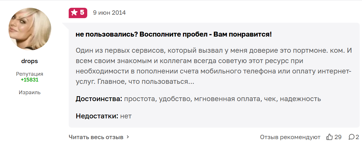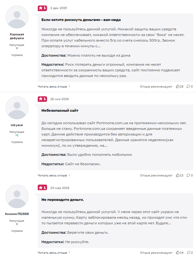 Также встречаются отзывы, в которых люди заявляют, что сервис «Портмоне» опасен, при проведении платежей пропадают деньги.