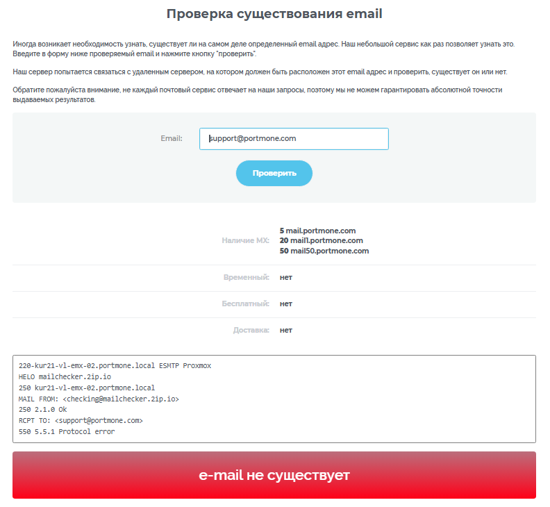 Для связи со службой поддержки клиентов есть электронная почта support portmone com. Проверка показала, что ее не существует.