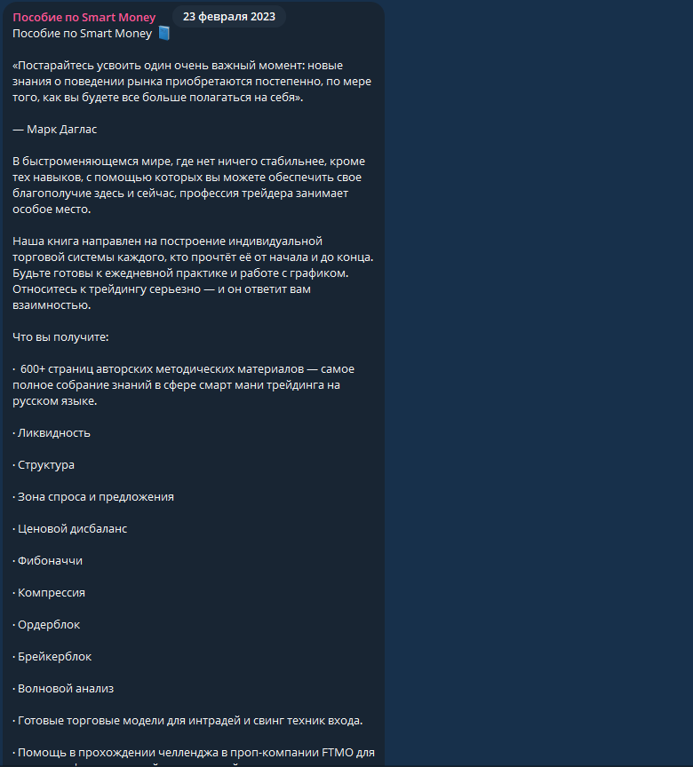 Анализ Телеграм-канала Пособие по Smart Money: отзывы, обзор программы об обучения