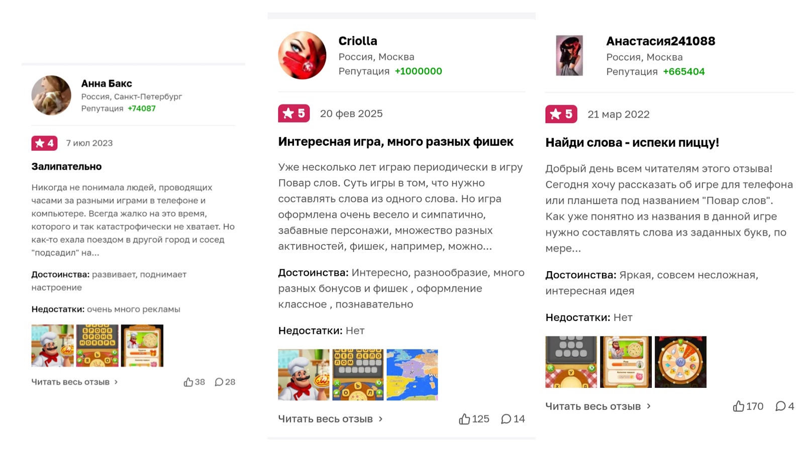 На независимых ресурсах также есть отзывы о том, что в игре Повар Слов слишком много навязчивой рекламы, из-за которой невозможно играть. Некоторый рекламный контент появляется потом в телефонах игроков.