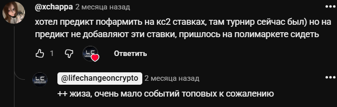 Конкретных отзывов на Predict Fun нет. Зато есть общие высказывания по поводу определенных событий на этой бирже.