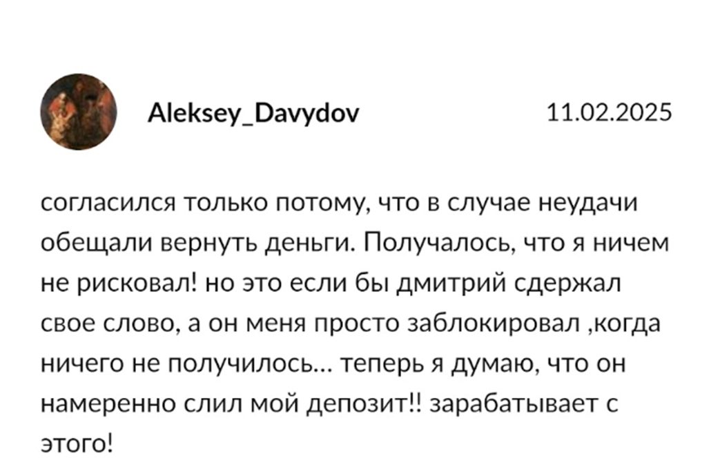 Есть ряд пользователей, которые не решились сотрудничать с трейдером, так как его деятельность не внушила им доверие.