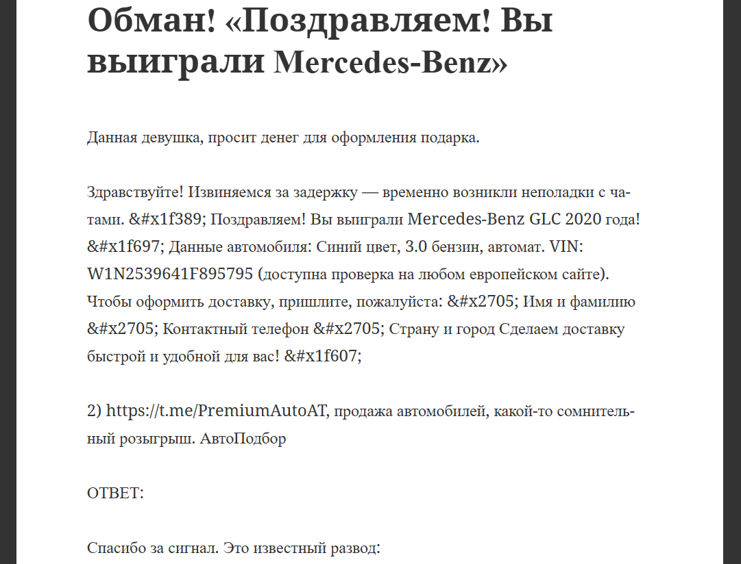 На независимых форумах в рунете только негативные комментарии в адрес данного канала. Розыгрыши авто здесь называют известным разводом и не советуют участвовать в них.