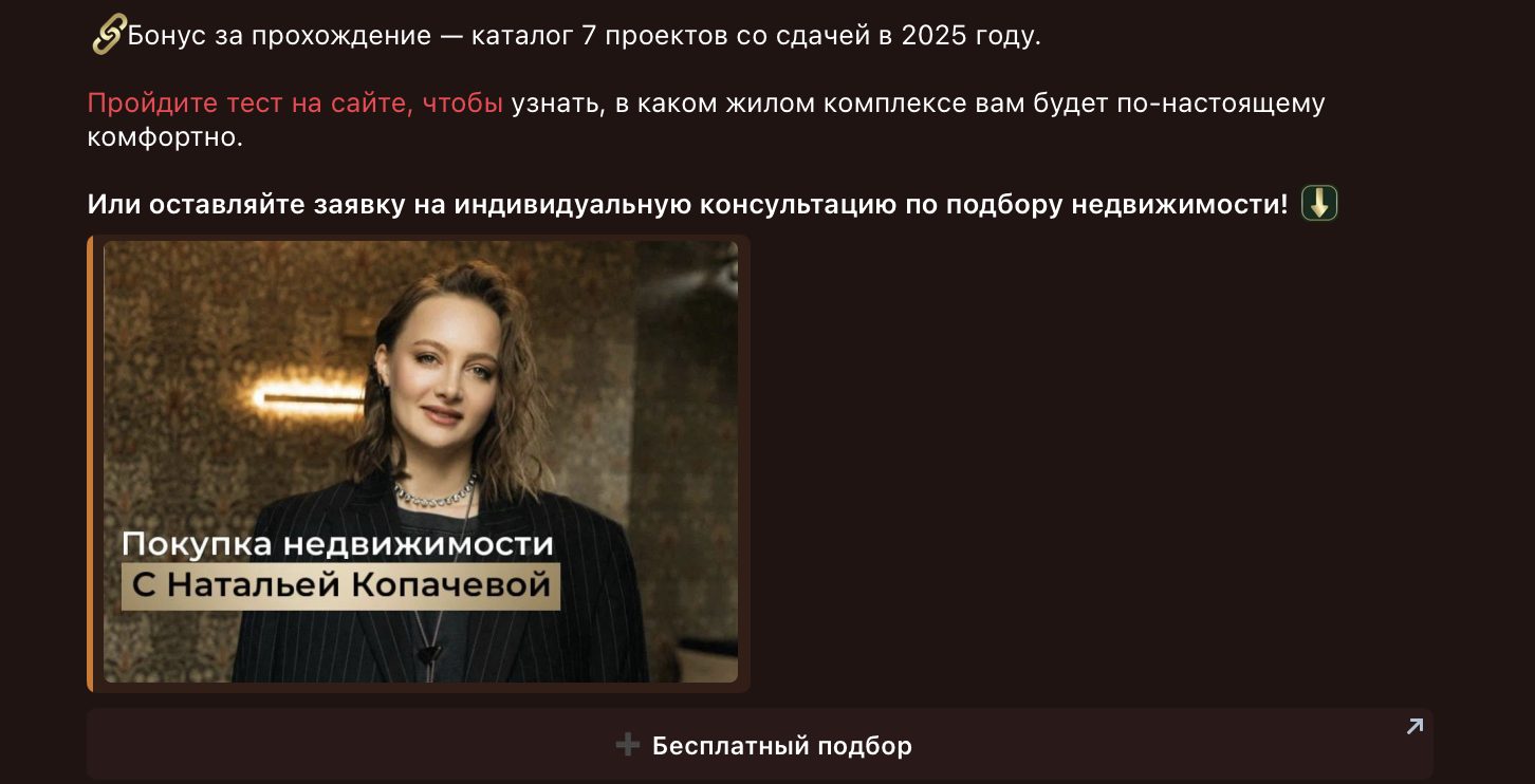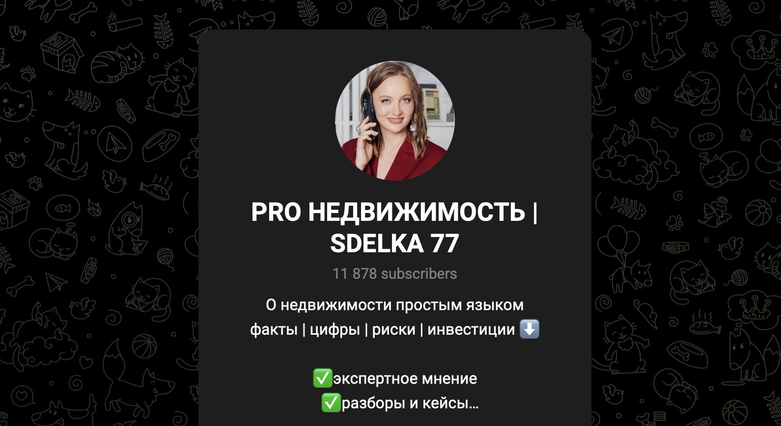 По сути, канал отражает часть деятельности агентства, периодически публикуя объекты, новости рынка и советы по сделкам. Кроме телеграм-канала Наталья Копачева приглашает подписчиков в тг-робот sdelka sdelka bot, профиль в Инстаграм и блок на YouTube.
