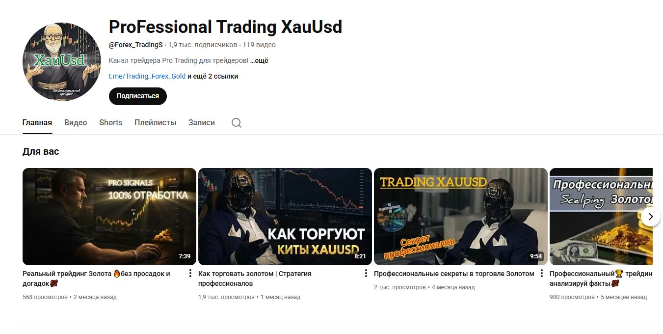 Автор также ведет YouTube-канал ProFessional Trading XauUsd с обзорами рынка. Однако ни на одной из площадок не опубликована верифицированная статистика сделок. Подтверждений реальной прибыльности сигналов не представлено.