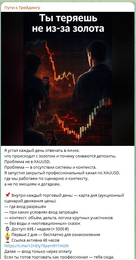 Телеграм-канал Пути к Трейдингу предлагает платный доступ к торговым сигналам и обучению трейдингу. Основной акцент в публикациях делается на демонстрации прибыли и приглашении в закрытый канал.