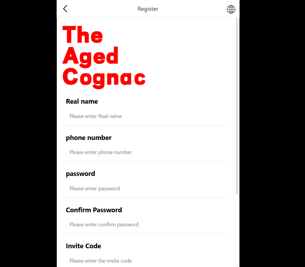 Реальная суть проекта раскрывается после регистрации. Чтобы создать аккаунт, пользователь должен указать имя, номер телефона, пароль и обязательный invite code. Без пригласительного кода регистрация невозможна, а это означает, что вход в проект всегда происходит через посредника — менеджера или куратора.