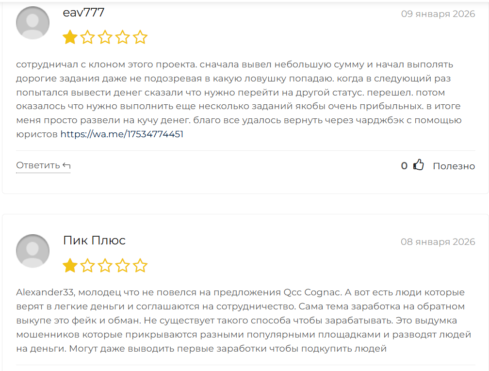 Qcc Cognac — это не инвестиционный проект, не торговая платформа и не легальный способ заработка. Это типичная скам-схема, замаскированная под тему коньяка, с использованием клонов, анонимности и психологического давления.