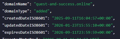 У этого проекта сразу несколько доменов. Сейчас работают только quest and success online и User Quest And Success Ltd. Оба домена были созданы 11 сентября 2025 года. Остальные адреса – User Quest And Success Net, Wt Quest And Success Net и quest and success com – уже недоступны для посещения. Это типичная схема для быстрого обхода блокировок и смены вывесок.
