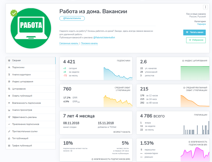 Вакансии для соискателей абсолютно бесплатны. Подписка на канал также открыта. Проект явно работает на особых условиях с теми, кто желает разместить в нем свое объявление или рекламу. Скорее всего, это и является источником дохода автора проекта.
