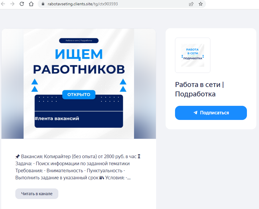 Стоит заметить, что все вакансии в группе «Работа в сети Подработка» Rabotavseting Clients Site являются высокооплачиваемыми, что выглядит подозрительно. Где-то обещают в час около 3-5 тысяч рублей, где-то в день до 5 000 рублей. Другие гарантируют 30 тысяч рублей в неделю.