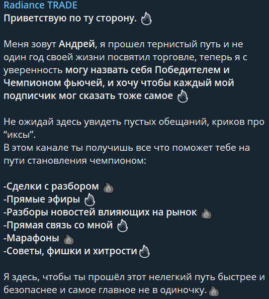 Radiance Trade: объективный обзор телеграм-канала и настоящие отзывы о нем в сети