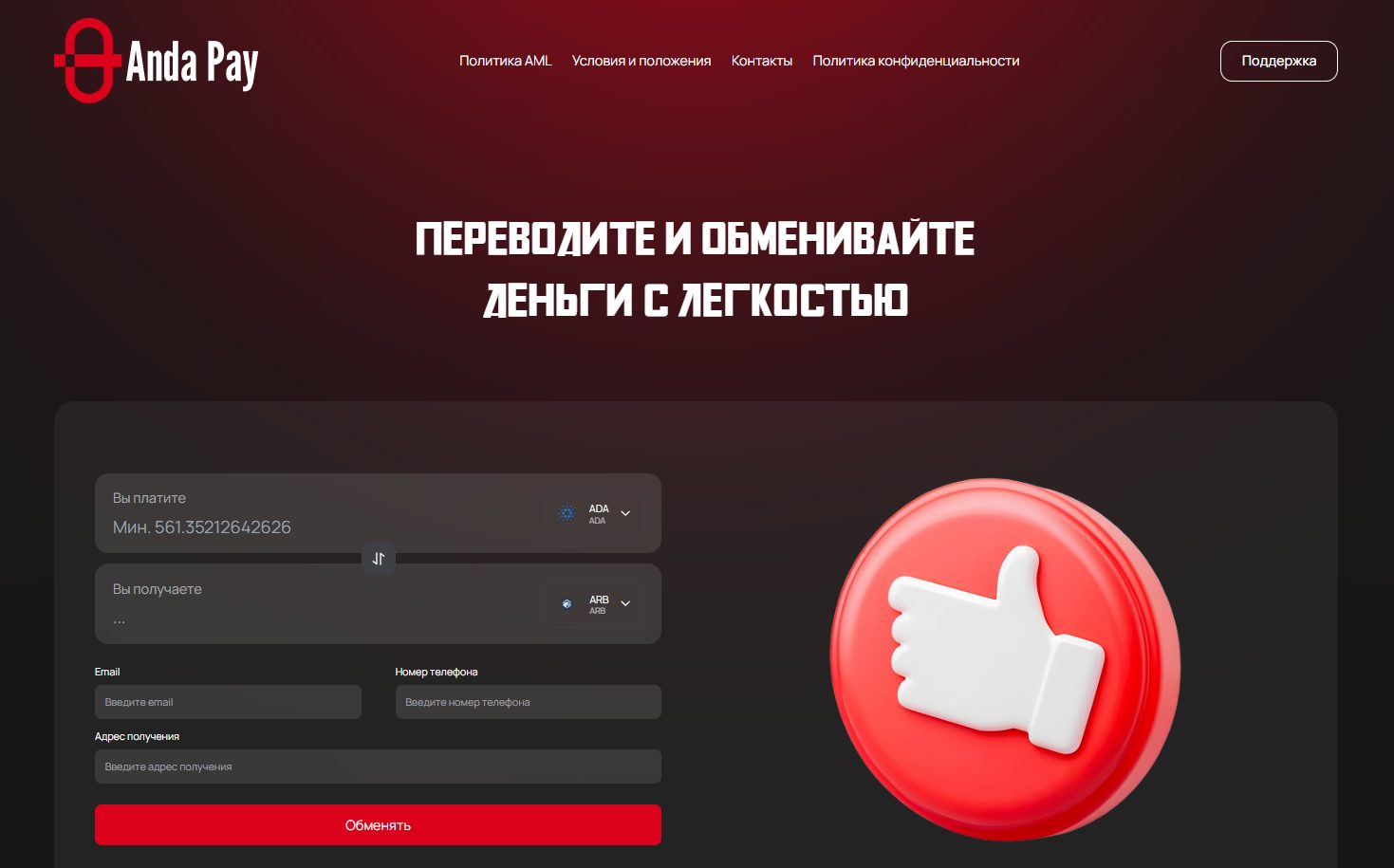 Проект называет себя надежным сервисом для обмена криптовалюты. На главной странице обещают лучшие курсы, быструю поддержку и безопасность. Но факты говорят об обратном.