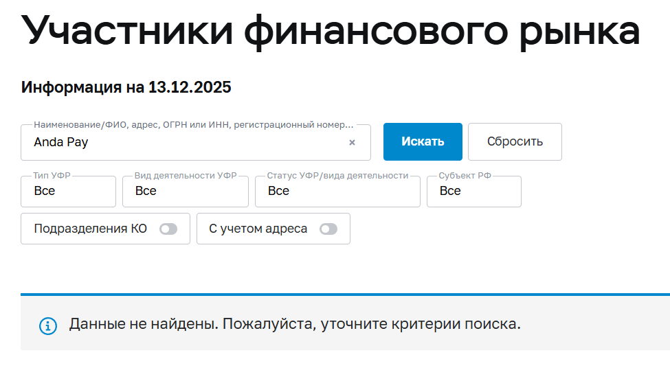 Домен появился в 2024 году. Текущий владелец купил его 17 ноября 2025. Сервису нет месяца. При этом на сайте стоит копирайт 2023–2025 Anda Pay. Как работать с 2023 года, если домен куплен месяц назад. Наглый обман.