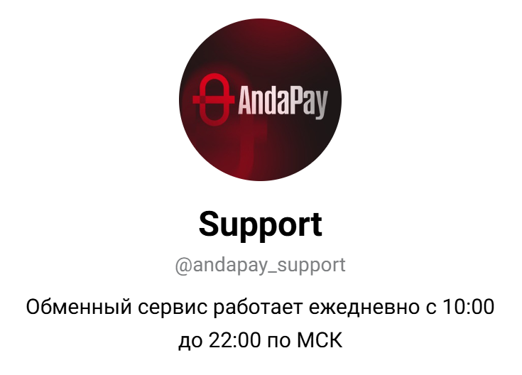 С аналогичным логотипом в Телеграмме работает техподдержка этого же валютника под другим названием – AndaPay com.