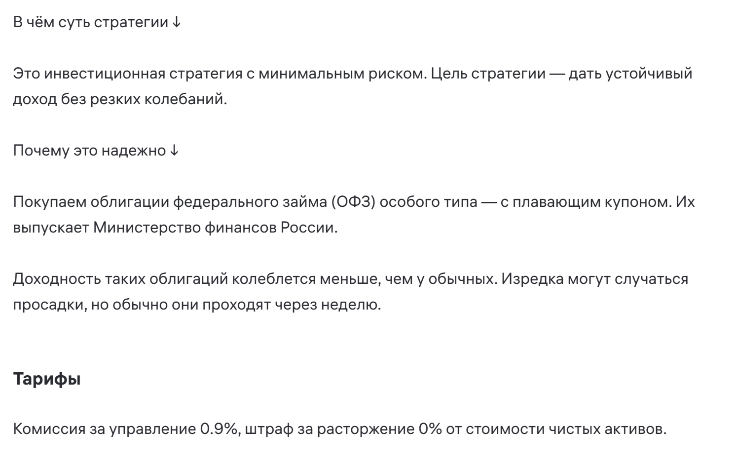 Вывод средств не облагается штрафами, рекомендованный инвестиционный период составляет от 1 года. В стратегии Уверенный доход были схожие условия.